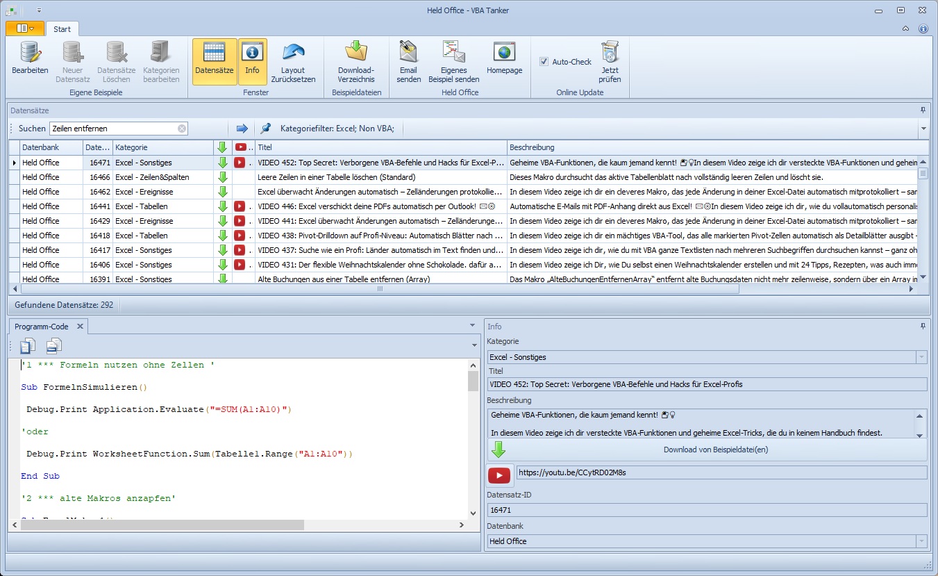Der VBA-Tanker ist eine professionelle Datenbank, die dir tausende fertige VBA-Prozeduren bereitstellt.